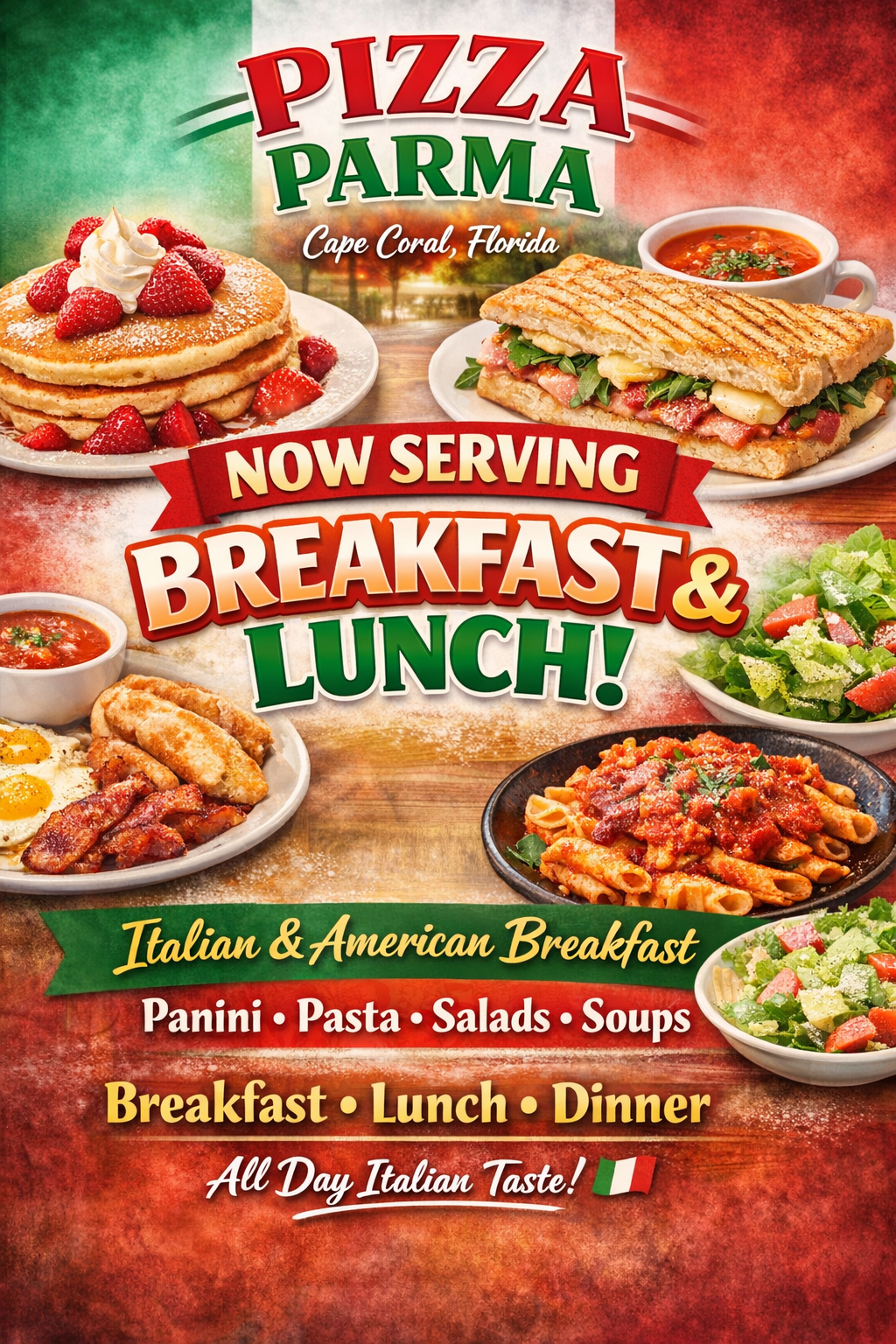 Pizza Parma blends the tradition and passion of Italy to deliver the finest pizza in Cape Coral. Founded in Cape Coral at 4643 Coronado Pkwy, we strive to combine authentic recipes from Parma, Italy, with local ingredients and a laid-back Florida vibe. Our chefs handcraft each pizza dough daily, layer fresh imported and local toppings, and bake in our high-heat ovens to achieve the perfect crisp.
